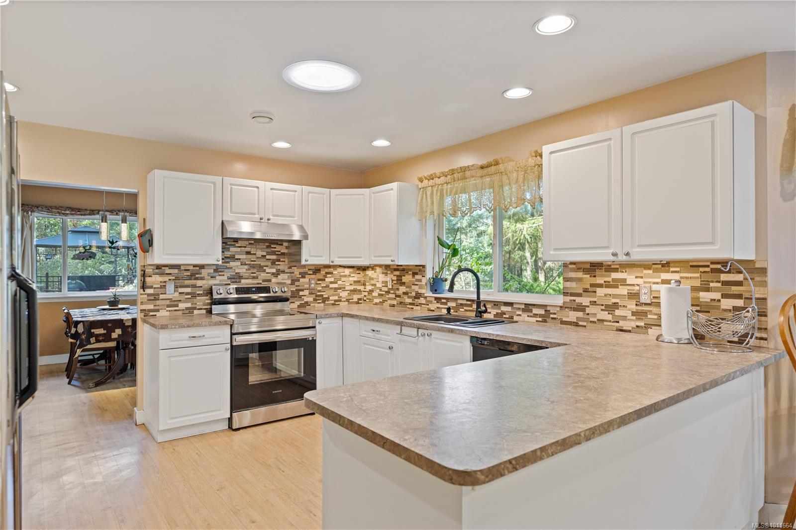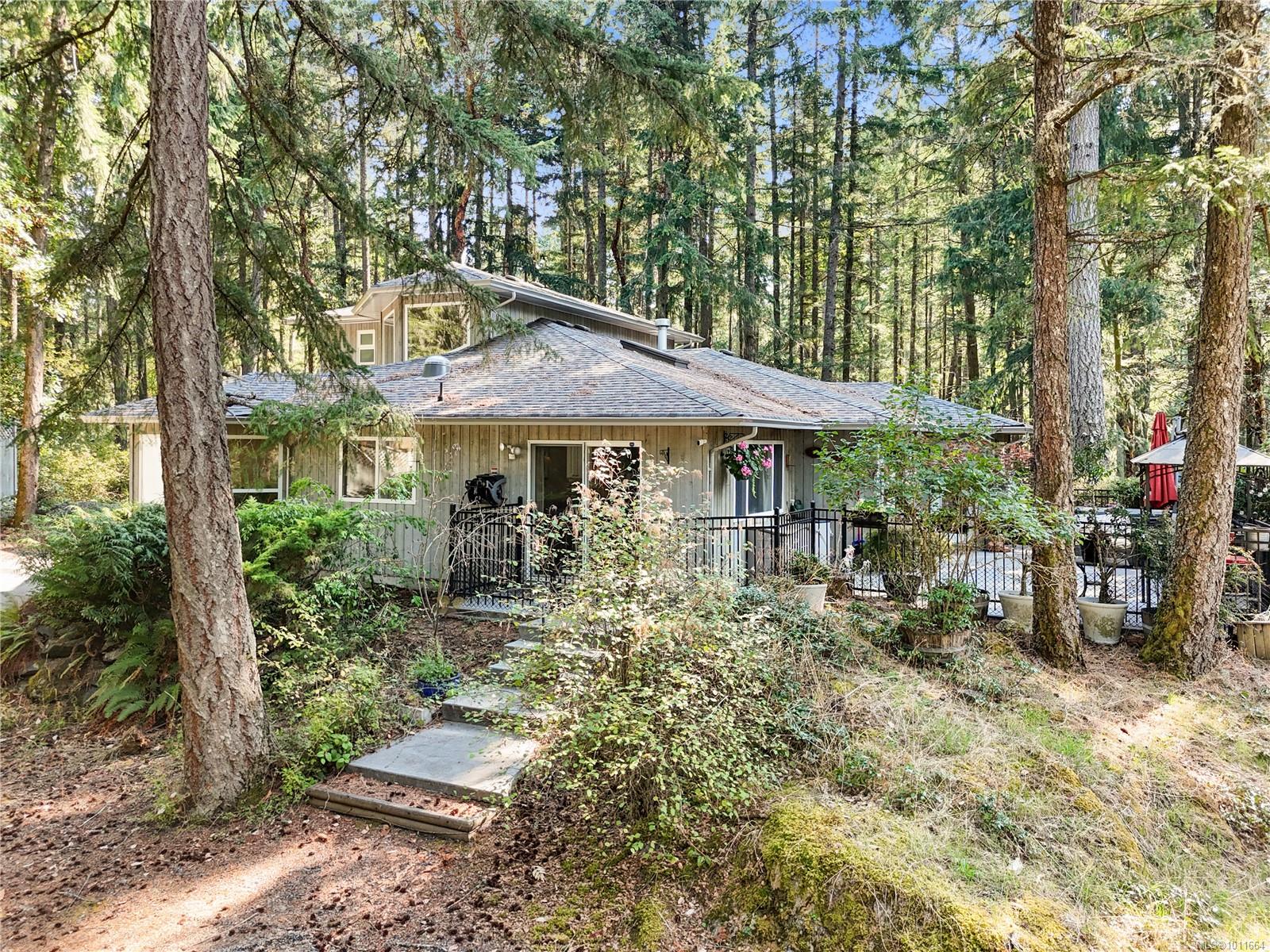 Welcome to this beautiful custom home set on a private 1.2-acre lot in the secluded Highlands—just five minutes to Costco and all major amenities. The bright open foyer welcomes you into a spacious layout designed for both comfort and entertaining. The large kitchen flows seamlessly into the living and dining rooms, offering open-concept living with direct access to a serene rear patio featuring a hot tub and sitting area. The main level includes a generous primary bedroom with ample closet space and ensuite, plus laundry and a versatile office or additional bedroom. Upstairs you’ll find two more bedrooms and a full bathroom, ideal for family or guests