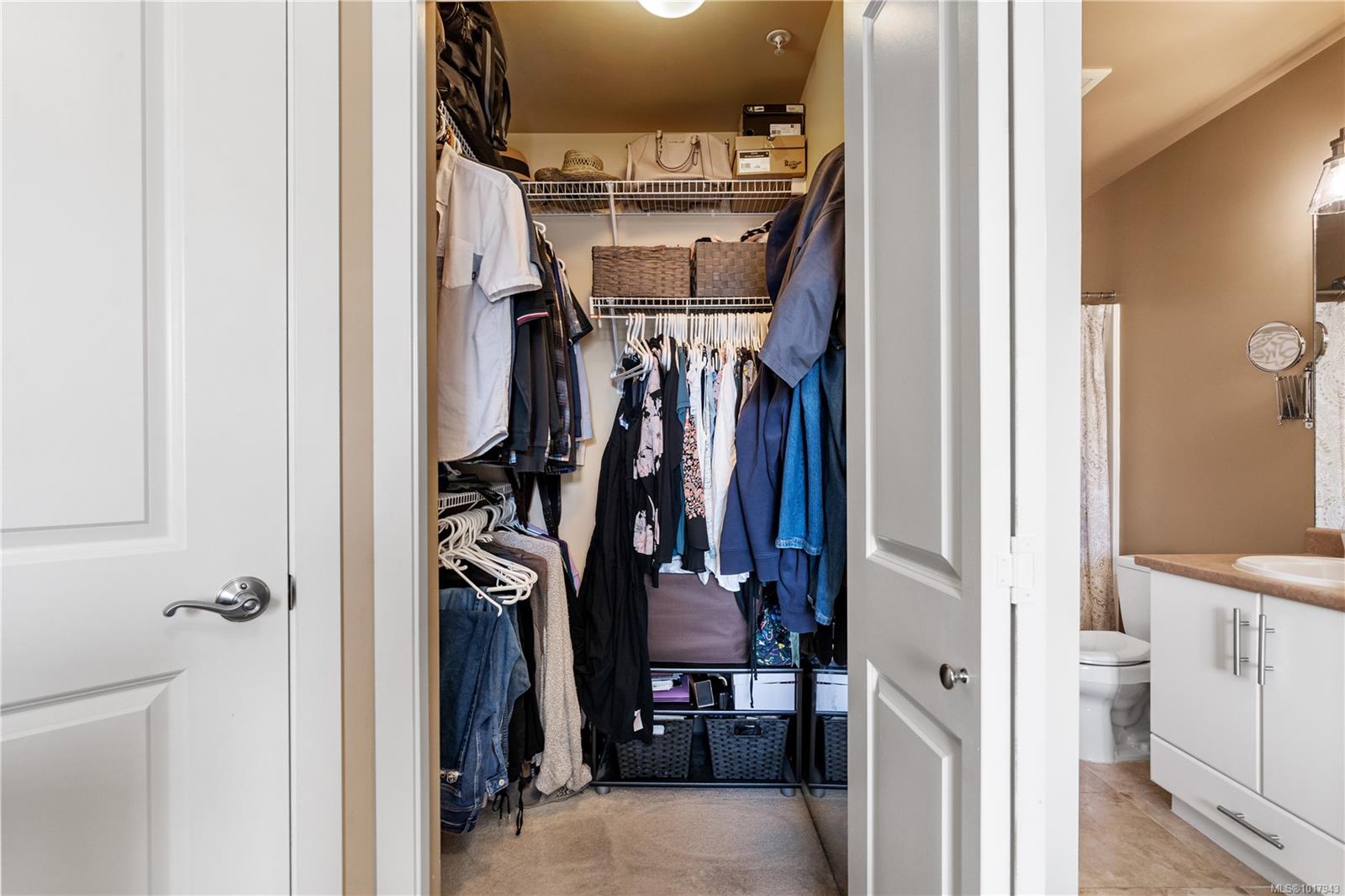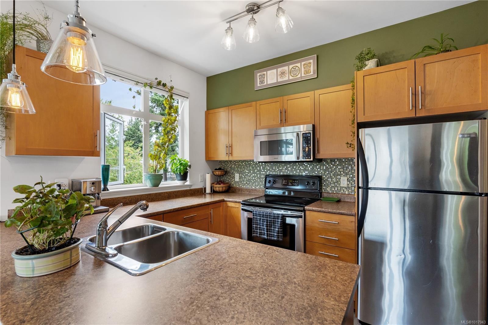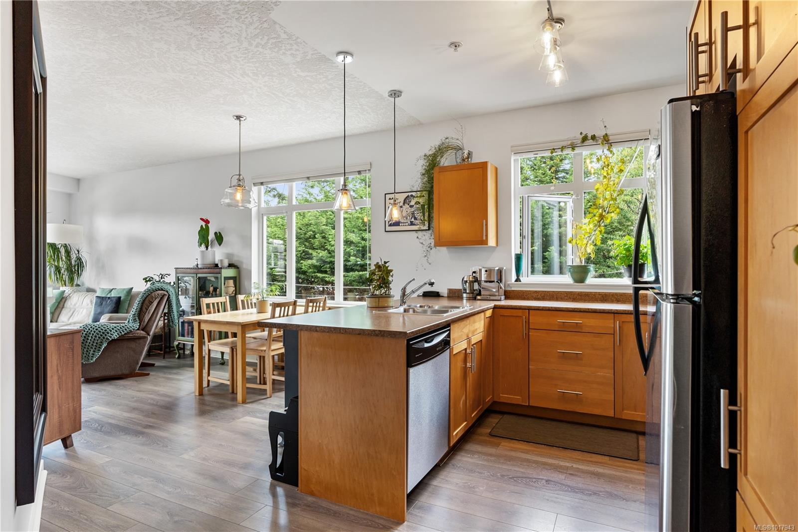 Welcome to this stunning and spacious 2-bedroom, 2-bathroom corner unit—offered by the original owner! Featuring 9’ ceilings, large windows with peaceful tree views off the kitchen, and a bright, open layout with room for a dining table. Freshly painted with new flooring and updated lighting throughout. The oversized deck is a true standout—perfect for a garden, kids’ toys, or pets to roam. The primary bedroom offers a walk-in closet, Crawford ceiling, and a private ensuite. The second bedroom has a generous closet and easy access to the updated second bathroom. Other highlights include in-suite laundry, a spacious entry closet, and secure underground parking. Well-maintained and move-in ready! This property is within walking distance to Royal Roads University and just minutes from shopping, entertainment, and beautiful walking and biking trails, this condo is an excellent investment or place to call home. Don’t miss out—put this gem on your list to view today!