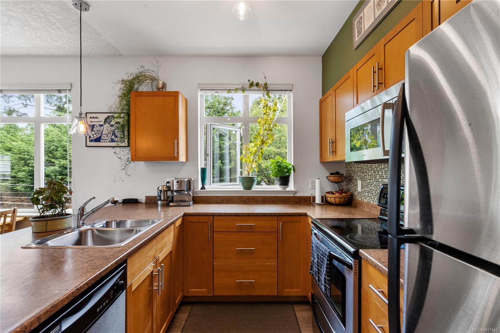 Welcome to this stunning and spacious 2-bedroom, 2-bathroom corner unit—offered by the original owner! Featuring 9’ ceilings, large windows with peaceful tree views off the kitchen, and a bright, open layout with room for a dining table. Freshly painted with new flooring and updated lighting throughout. The oversized deck is a true standout—perfect for a garden, kids’ toys, or pets to roam. The primary bedroom offers a walk-in closet, Crawford ceiling, and a private ensuite. The second bedroom has a generous closet and easy access to the updated second bathroom. Other highlights include in-suite laundry, a spacious entry closet, and secure underground parking. Well-maintained and move-in ready! This property is within walking distance to Royal Roads University and just minutes from shopping, entertainment, and beautiful walking and biking trails, this condo is an excellent investment or place to call home. Don’t miss out—put this gem on your list to view today!
