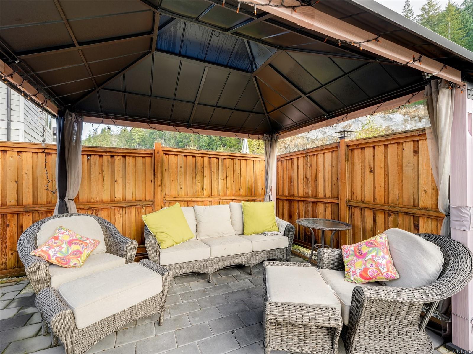 This beautifully maintained home feels brand new and sits on one of the most desirable lots in the neighbourhood. Featuring 3 bedrooms plus an office and 3 bathrooms, it has been thoughtfully updated throughout with new flooring, a heat pump, epoxy-finished garage, and a stunning redesigned laundry room. The bright open-concept main level showcases a modern kitchen with quartz countertops that flows seamlessly to the sunny backyard—complete with a garden, gazebo, and peaceful treed backdrop. Upstairs, the spacious primary suite offers a cozy fireplace, large walk-in closet, and a beautiful ensuite. Enjoy plenty of parking, including room for an RV, and a fully fenced yard perfect for kids and pets. Located across from a green space and playground in a family-friendly community, just 5 minutes to Shawnigan Lake and 20 minutes to the Westshore. Balance of home warranty included—move right in and enjoy!