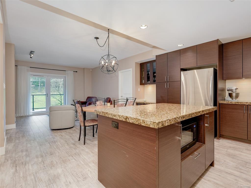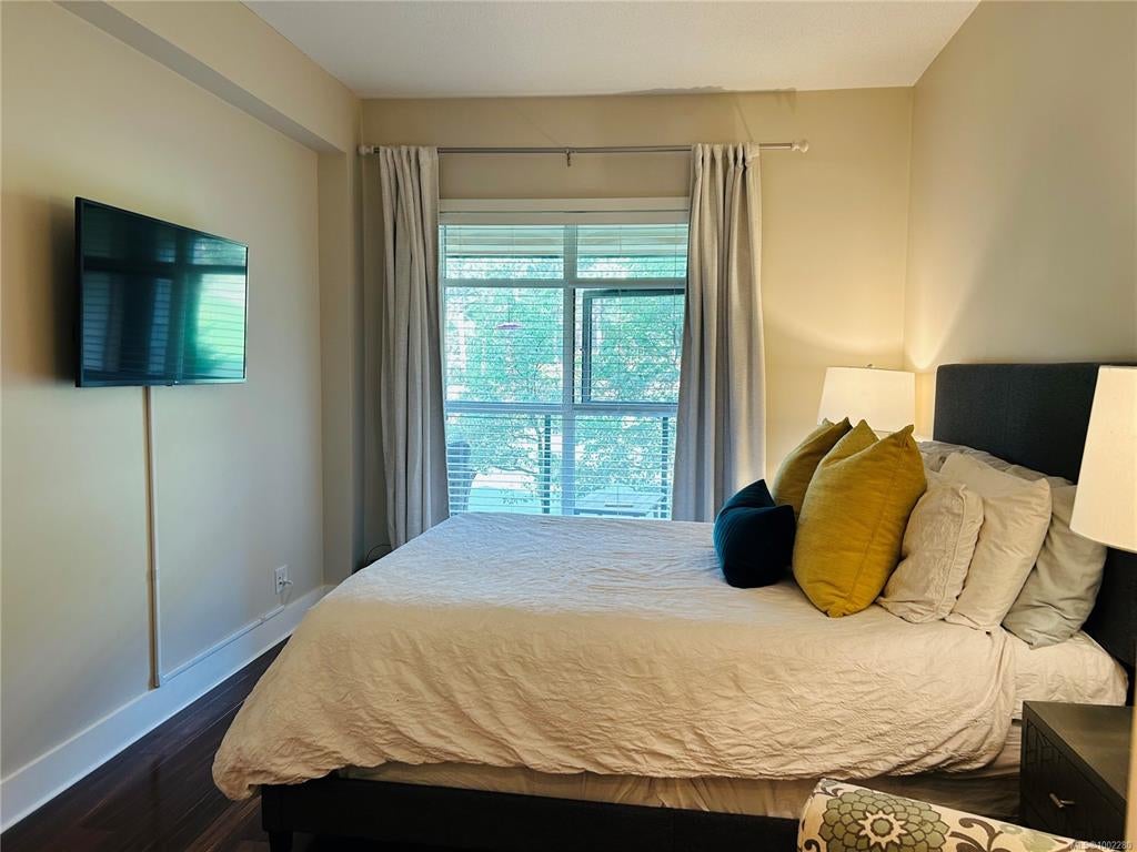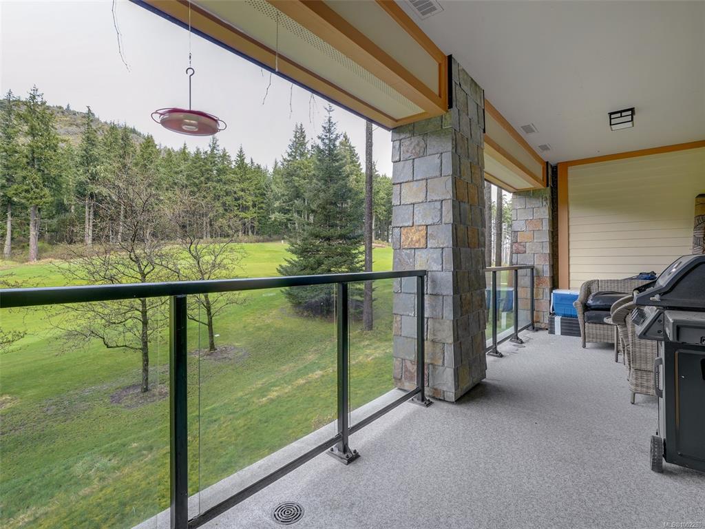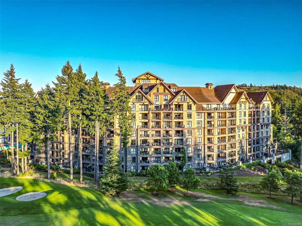 Welcome to Finlayson Reach, a beautifully updated 2 bed + den, 2 bath condo in the heart of Bear Mountain Resort Village. This sought-after corner layout offers 1,261 sq ft of open concept living with 9’ ceilings, new flooring & paint, high-end appliances, custom closets & a large kitchen with island & gas range. The oversized den works perfectly as a 3rd bedroom or office. The primary features a walk-in closet & spa-inspired ensuite with heated floors, double sinks & large shower. Enjoy golf course & Mt. Finlayson views from your covered deck with gas BBQ hookup. Full-size laundry room with storage & sink, wet bar/office space & efficient heat pump for heating & AC. Amenities include gym, sauna, steam room, theatre, lounge & car wash. Pet friendly, rentals allowed & steps to world-class golf, dining, tennis, hiking & more. Resort living at its finest!