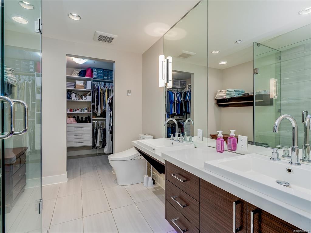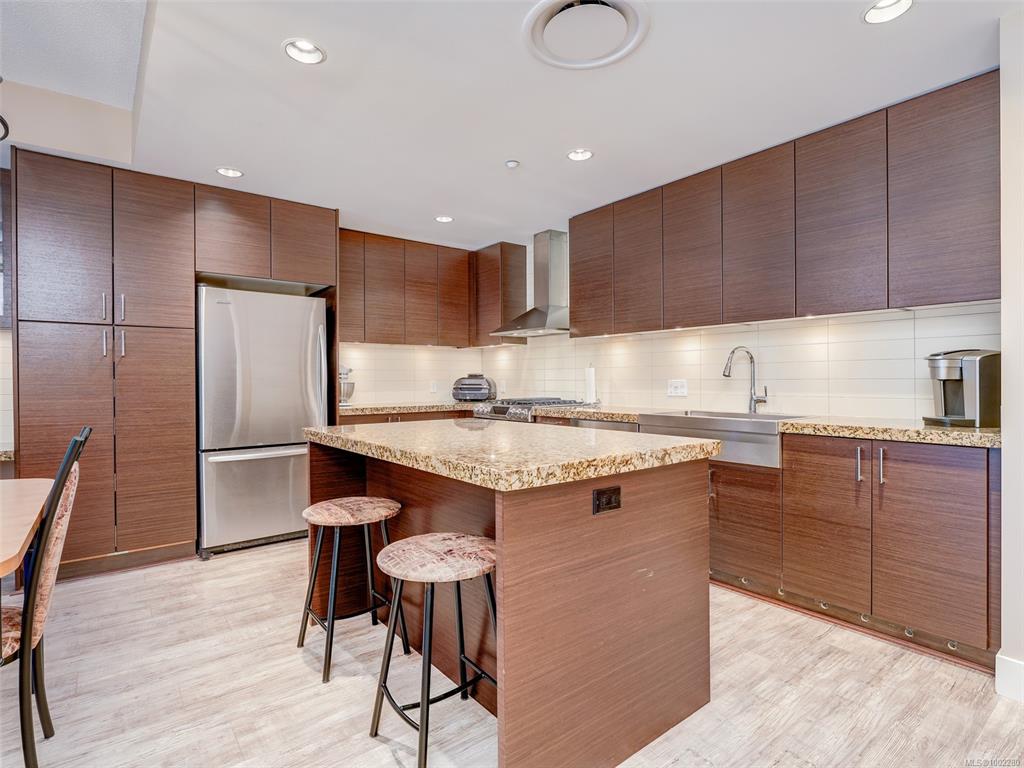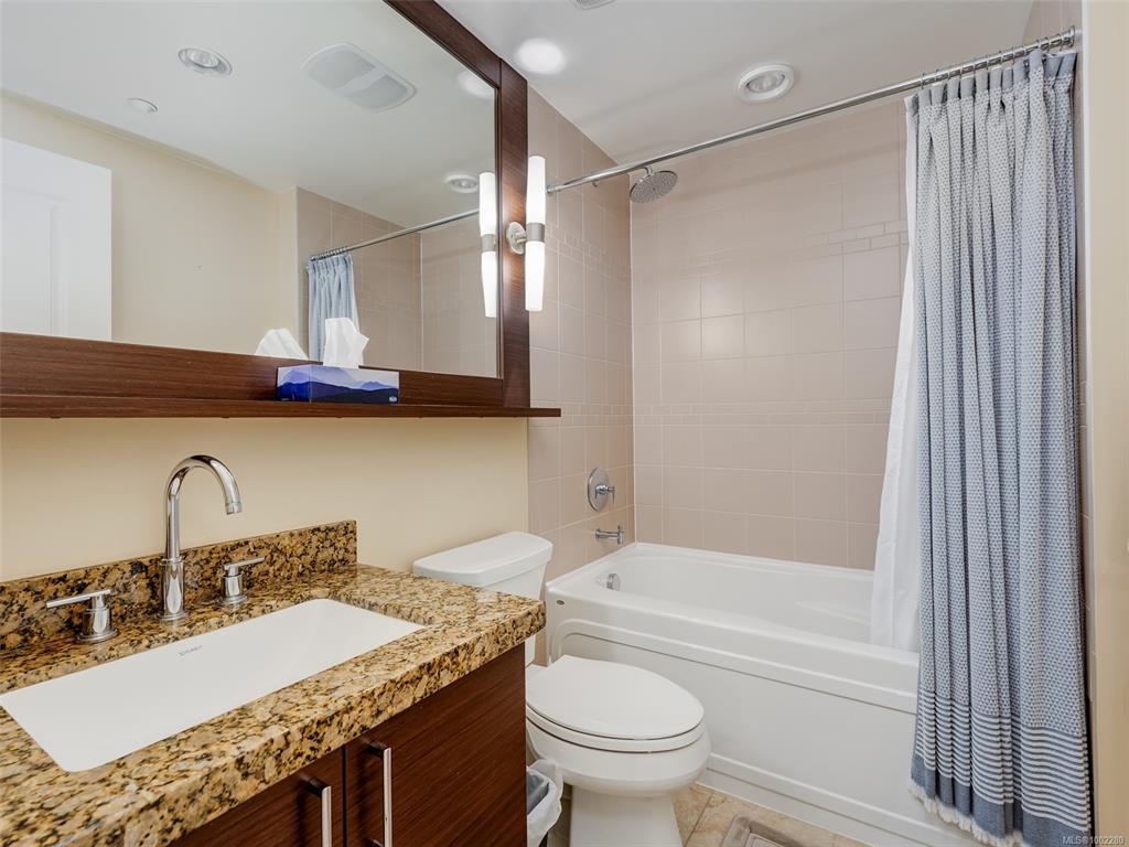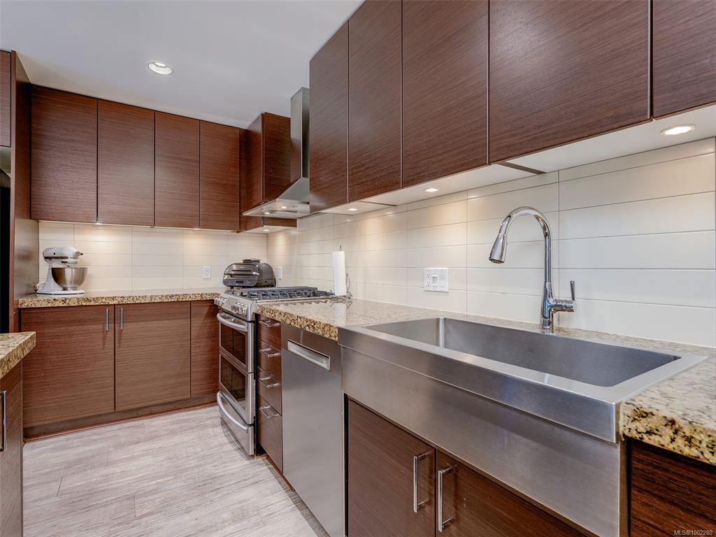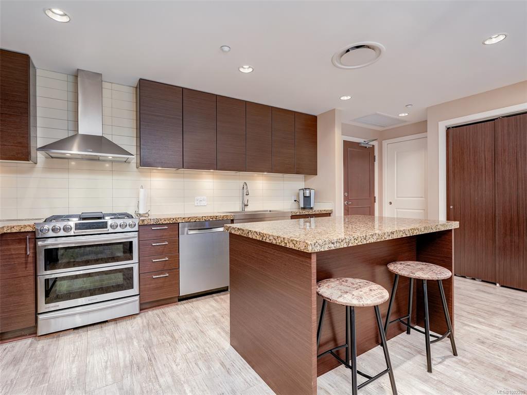 Welcome to Finlayson Reach, a beautifully updated 2 bed + den, 2 bath condo in the heart of Bear Mountain Resort Village. This sought-after corner layout offers 1,261 sq ft of open concept living with 9’ ceilings, new flooring & paint, high-end appliances, custom closets & a large kitchen with island & gas range. The oversized den works perfectly as a 3rd bedroom or office. The primary features a walk-in closet & spa-inspired ensuite with heated floors, double sinks & large shower. Enjoy golf course & Mt. Finlayson views from your covered deck with gas BBQ hookup. Full-size laundry room with storage & sink, wet bar/office space & efficient heat pump for heating & AC. Amenities include gym, sauna, steam room, theatre, lounge & car wash. Pet friendly, rentals allowed & steps to world-class golf, dining, tennis, hiking & more. Resort living at its finest!