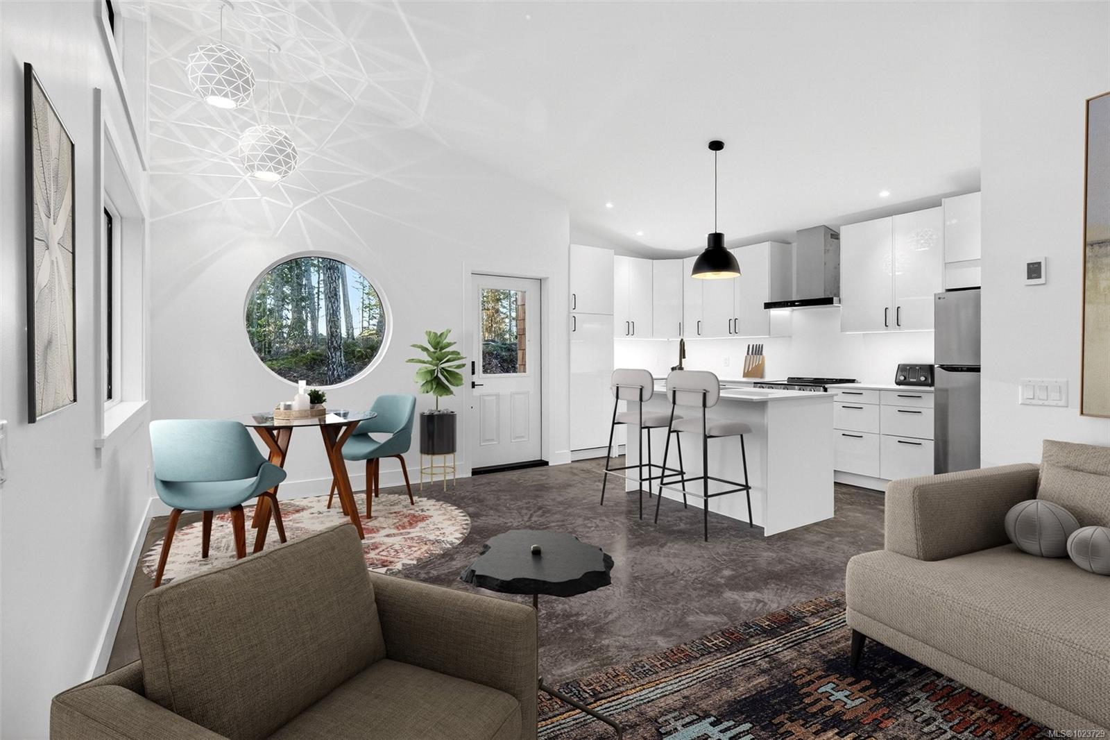Welcome to this peaceful West Coast modern home set on 2.5 private acres just minutes from Sooke and a short drive to Jordan River’s renowned surf. Surrounded by beaches, trails and Kemp Lake, this location offers endless outdoor enjoyment. The home features a warm West Coast aesthetic with cedar shake exterior, stamped concrete patios, and large windows that frame the natural surroundings. Inside you’ll find 2 bedrooms + an office and 2 bathrooms, including a primary bedroom with ensuite, heated concrete floors, and rough-ins for solar panels and a hot tub. The spacious acreage provides a beautiful natural setting with room for future possibilities subject to municipal guidelines. Enjoy the tranquility of your secluded patio, mature trees and true West Coast living.Home warranty and connected to CRD water for your convienence. Price plus GST