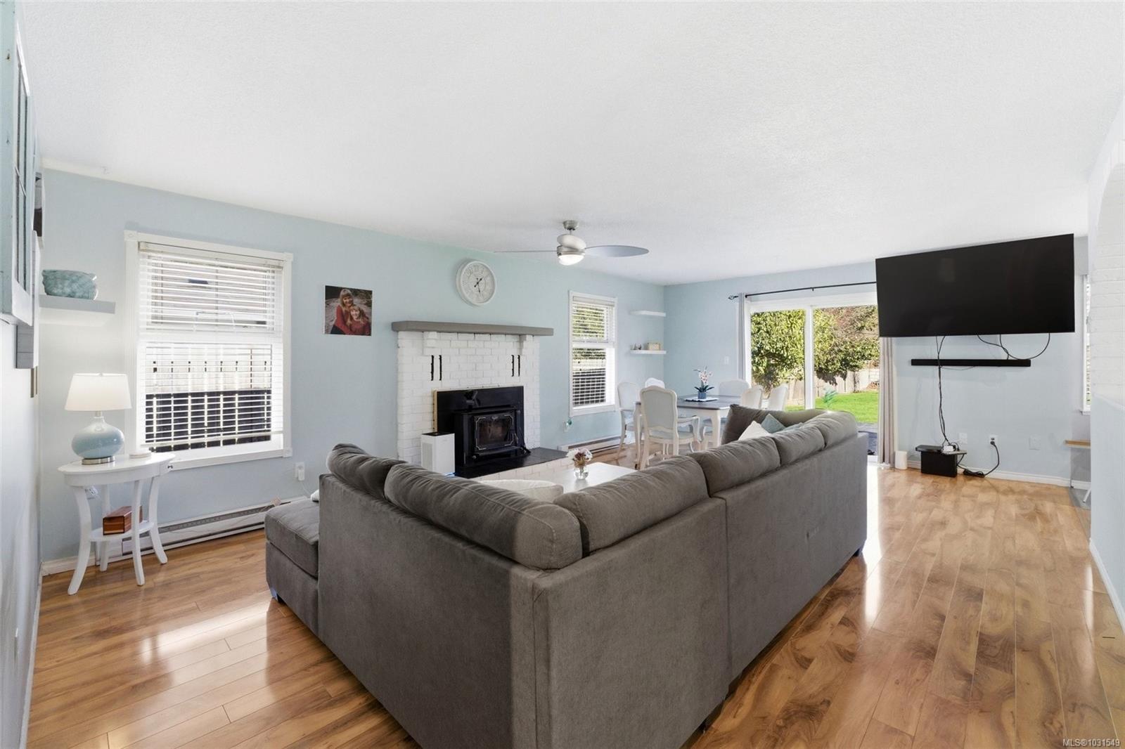 Move-in ready 3 bedroom, 2 bathroom rancher located at the end of a quiet no-through street in a prime Sooke location. Set on a large, flat and private lot, this property offers exceptional outdoor space with a stamped concrete patio perfect for entertaining, kids and pets, plus a mature apple tree. The driveway includes RV parking, providing excellent flexibility. Inside, this charming home features brick archways and a cozy fireplace that add warmth and character. The primary bedroom offers a large closet and private ensuite, while two additional bedrooms are generously sized. Updates include new flooring, vinyl windows, appliances, roof, hot water tank and bathroom improvements, offering peace of mind. Walking distance to schools, amenities and the beautiful ocean. Ideal for first-time buyers or downsizers. Don't miss this opportunity.