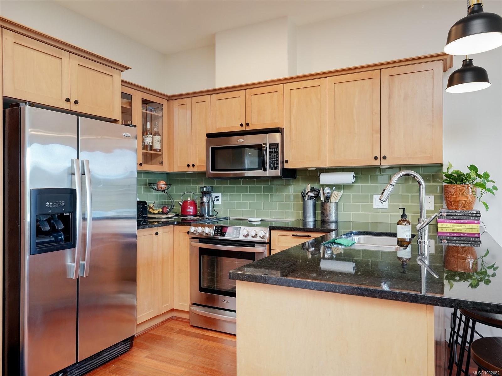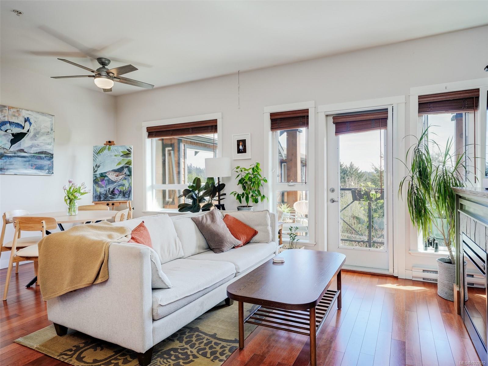 Top-floor, south-facing 2 bed, 2 bath condo in the heart of View Royal! Offering over 900 sq ft of well-designed living space, this bright and private suite overlooks the peaceful courtyard and enjoys great natural light throughout. The functional layout features an open-concept living and dining area, a spacious kitchen, and a primary bedroom with ensuite. Enjoy the convenience of in-suite laundry, secure underground parking, and access to the building’s fitness room. Ideally located just minutes from Thetis Lake, the Galloping Goose Trail, nearby golf courses, and all major amenities, this is a fantastic opportunity for first-time buyers, downsizers, or investors alike.